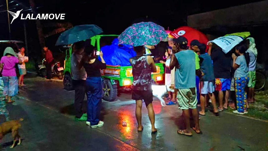 Multiple Lalamove trucks and motorcycles helped transport essential goods such as blankets, sleeping mats, bottled water, food packs, and medical supplies to the affected areas.