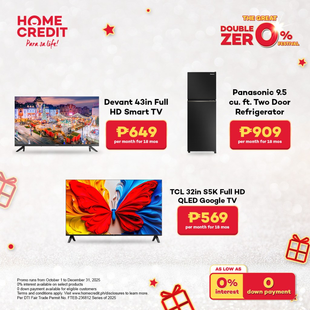 - TCL 55” 4K HDR TV – Maayo kaayo nga family TV para sa klaro ug makalingaw nga tan-awon, as low as ₱28 kada adlaw o ₱849 kada bulan sulod sa 18 ka bulan, nga nagkantidad og ₱20,952.
